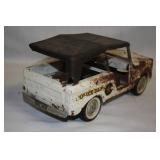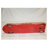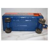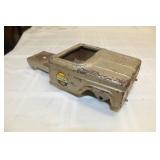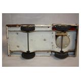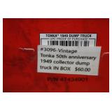 CATALOG TEXT BELOW: 6 - Marble and Wood 3 Tier Shelf 7 - Ottoman or Foot Rest 8 - Mission Style End Table 9 - Duncan Phyfe Coffee Table w/Leather Insert 10 - Floor Lamp/Magazine Rack/End Table 11 - Comfy Chair 12 - Wooden Desk 13 - 1920s Waterfall Cedar Chest 14 - Wood Dresser 15 - Wood Double Mirror (wall hanging-matches 14) 16 - Wood Night Stand 17 - Sectional Sofa with 2 Ottomans 18 - Love Seat 19 - Shelf 20 - Paisley Print Storage Ottoman NICE 21 - 3 Wooden Folding Chairs 22 - Folding Table 23 - Decorator Side Table 24 - Antique Oak High Chair 25 - Day Bed with Trendle 26 - Enteratinment Cabinet with Storage 27 - 2 Outdoor Chairs, Cushions & Side Table 28 - 2 Outdoor Lounge Chairs, Cushions and Side Table 29 - Outdoor Table, 6 Chairs, Cushions 30 - Duncan Phyfe Drop Leaf Table 31 - Wicker Like Side Table 32 - Log of Cleaning Tools 33 - Garden Tools-Sledge, Picks, Rock Bar, Rakes 34 - Tools-Pitch Forks, Rakes, Edger & MORE 35 - TOOLS-Shovels,Scyth, Weasle, Pole Saw 36 - TOOLS-Pick Axes, Axe, Pitch Fork and MORE 37 - TOOLS-Pitch Fork, Rakes, Axe, Post Hole Digger 38 - Lot of Assorted Clamps 39 - 3 Piece Aluminum Flag Pole Approxemately 15 footer 40 - Metal Garage Shelf 41 - 4 Large Storage Totes with Lids 42 - 4 Storage Totes with Lids 43 - Vintage Chair-Excellent Condition 44 - Step Back End Table 45 - Antique Chair 46 - Small WORKING Refrigerator 47 - Light Oak Curio Cabinet 48 - Large Mouth Bass Mount 49 - Retro Wall Hanger 50 - Beautiful Dresser by Kincaide 51 - Pair of Matching Kincaide Night Stands 52 - King Size Brass Headboard 53 - Beautiful Large Brass Vase with Arrangement 54 - Seagram's Vodka Advertising Mirror 55 - Christian Brothers Advertising Mirror 56 - 4 Vintag Rose Back Chairs 57 - Oak Curio with Drawers 58 - Wood Chest of Drawers 59 - Dolly and Cart all in one 60 - Hose and Reel 61 - Folding Utility Cart 62 - Oak Cabinet 63 - Craftsman 4.5 Horse Power Washer 64 - Craftsman Wet/Dry Vac Vacuum 65 - Pedaling Exerciser 66 - Kenmore Carpet Cleaner with Extras 67 - 3 Homelite Weed Eaters All 3 have compresion. 68 - Wheel Barrow 69 - 2 Bookcase Storage Cabinets 70 - 2 Budweiser Beer Holiday Mugs Steins 71 - 2 Blackhawk Gun Holsters Omnivoew & Serpa CDC 72 - Collection of NBA Basketball Collector Cards q 73 - Assorted Collector Cards 74 - Vintage Ladies Hats and Hat Box 75 - Bundle of Weatherby 50 Catalogues 76 - Vtg Heddon Fishing Reel Box & Shakespeare Reel 77 - Frostlight Faeries Hallmark Ornaments 78 - Old Railroad B.N.S.F. Pad Lock 79 - Box of Collector Cards 1990s 80 - Box of Topps Baseball Cards and More 81 - East German DDR Officer's Border Guard Beret & VFW 82 - 2 Antique Pulley's 83 - Michael Kors Purse 84 - Vintage Eye Glasses 85 - 1956 Johnny Cash & Elvis Presley Concert Poster 86 - 2 Vintage Pulley's 87 - Wood "Venice Barber Shop" Sign (Kansas City) 88 - Parkview Vikings Jacket & Band Slacks 89 - Ladies Vintage Hats and Hat Box 90 - U.S. Army Uniforms Etc 91 - Black Leather Vest SIze Large 92 - Levi's Denim Jacket with Patches Size 46 93 - "President is Slain" Rocky Mountain NewsPaper 94 - Portfolio of Harley Davidson Prints 1903-2003 95 - 2 Pictures of James Dean 96 - 2 Baseball Posters 97 - Shriner's "Midian" Hat 98 - Assorted Frisco Railroad Books 99 - Assorted Frisco Railroad RR Booklets 100 - Frisco Railroad RR Train Performance Reporting 101 - Frisco Railroad RR Booklets 102 - Ladies Rock Revival Jeans & Shorts 103 - Stack of Assorted Pictures Horses & Old Mill 104 - Vintage All Aboard Train Publications 105 - Vintage Frisco Railroad RR Booklets 106 - Large Assortment of Train Collector Ephemera 107 - Binder Full of Baseball Collector Cards 108 - NEW Air Conitioner Support System 109 - Large Stack of Railroad Stock Certificates 110 - U.S. Navy Blue Jacket 111 - Lot of Railroad Stock Certificates 112 - Emergency Handling Training Book Explosives 113 - Lot of Frisco Time Tables 1979 114 - Vintage Boy Scouts Uniforms, Patches and MORE 115 - Vintage Little Orphan Annie Play Stove 116 - Vintage Blue Tonka Truck 117 - Pair of Brass Table Lamps 118 - Lot of Toy Car and Truck Tires and MORE 119 - Toy Train and Truck 120 - Toy Drag Car 121 - John Deere Toy Dozer 122 - Vintage Corvette Racing Car Kit 123 - Vintage Tonka TOys AA Tow Truck 124 - Box of Toy Car and Truck Wheels, Axles, ETC 125 - Tanker and Semi Truck MILES 126 - Nylint Orange Model T Roadster Toy Car 127 - Vintage Tonka Super Tanker And TRUCK 128 - Nylint "TrailBlazer" Toy Chevrolet 4 x 4 129 - Strutco 1960s Jeep 130 - Vintage Structo Pressed Steel Tow Truck 131 - Vintage Nylint Ford Truck & Uhaul Box Toy Truck 132 - Nylint Toys Metro Police Wrecker Tow Truck 133 - Vintage Structo Wind Up Dies Cast Truck 134 - 34" Structo Hook N Ladder Fire Truck Toy 135 - ERTL Toys Structo Hydraulic Dump Truck Toy 136 - Tonka AA Police Wrecker 1960s Pressed Steel Toy 137 - ABC Intertube 138 - 1940s Japanese Tin Litho Queen River Boat 139 - 1940 Buddy L Pressed Steel Sand/Gravel Truck 140 - Buddy L White Pressed Steel Super Market Delivery 141 - Vintage Fire Hook N Ladder Truck 142 - Structo Ready Mix Cement Mixer Toy Truck 143 - Cast Iron Toy Tractor 144 - 1930s Wyandotte Pressed Steel Ambulance Truck 145 - 1940s Hubley Diecast Bell Telephone Truck 146 - 1960s Nylint 5200-G FIrd Econoline Pick UP 147 - 1970s Nylint Farm Stake Truck 148 - Structo Hydraulic Dump Truck Pressed Steel Toy 149 - Hot Rod Magazine 1941 Willey's Gasser Die Cast 150 - Exxon Toy Tanker Truck Rely on the Tiger in BOX 151 - Extra Large Pet Kennel 152 - Buddy L Brute Haulers Police Helicopter & Semi 153 - Bank O Matic Gumball Machine Toy w/box 154 - Tin Speedway Car by Schylling in box 155 - TootsieToy Emergency Rescue Toy Truck Set 156 - Xonex Pursuit Plane-Mini Pedal Vehicle 157 - Nylkint Steel Goodwrench Wrecker Tow Truck 158 - Buddy L Pressed Steel Circus Truck & Trailer Toy 159 - Texaco Oil Tanker Truck with box 160 - Bissell's Little Gem Toy Floor Sweeper 161 - Buddy L Formula Toy Car 1989 Macau 162 - Lovely Decorator Print Framed 163 - 1950s