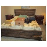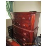 PARTIAL LISTING: CONTEMPORARY FIVE PIECE MAHOGANY BEDROOM SUITE INCLUDING A NINE DRAWER DRESSER WITH CARVED GRAPES AND OVAL MIRROR AND. A MATCHING PAIR OF NIGHTSTANDS, 7 DRAWER TALL CHEST, 2 DRAWER THOMASVILLE NIGHTSTANDS, LIKE NEW KIRBY VACUUM CLEANER WITH ATTACHMENTS, PAIR OF STOOLS, WINE RACK, THOMASVILLE 8 DRAWER DRESSER WITH MIRROR WITH A TALL CHEST, MODERN KING SIZE BED WITH MATTRESS AND BOX SPRING, ANTIQUE OAK SEWING MACHINE, OVERSIZED RECLINER, 2 DOOR BOOKSHELF, TILE TOP KITCHEN TABLE WITH 6 CHAIRS, 4 MAHOGANY- SHIELD BACK DINING ROOM CHAIRS, LIKE NEW IMPERIAL TREADMILL, SMALL REFRIGERATOR, TVS, ELECTRONICS, CDS AND DVDS, STEINS, CROCKS, FRAMED. MOVIE POSTERS, PICTURES, ANTIQUE FRAMES, AIR PURIFIERS, SILVER PLATE FLATWARE SET IN CASE, LAMPS, LOTS OF NEW ITEMS STILL IN BOXES, RUGS, PADDED MATS, ANTIQUE COLORED INSULATORS, COPPER HAM BOILER, QUILTS, LINENS, BLANKETS, ANTIQUE OAK CALENDAR CLOCK AND OTHER CLOCKS, POTS AND PANS, LADDERS, TOOLS AND HARDWARE, DEER MOUNTS, GAS EDGER, ELECTRIC SNOW BLOWERS, NEW DEWALT 200 LINE TRIMMER, CRAFTSMAN SAW, SAW HORSES, PATIO FURNITURE, FOLDING CHAIRS, COSTUME JEWELRY, CHRISTMAS DECORATIONS, MEN'S AND WOMAN'S CLOTHES AND SHOES, YANKEE CANDLES, KITCHEN AID MIXER, ASSORTED CANNED GOOD FOODS, COLLECTION OF BLACK POWDER GUNS, RELOAD EQUIPMENT AND SUPPLIES, NEW GADGETS AND MUCH MUCH MORE!!l ALL GUNS AND VALUABLES REMOVED UNTIL DAY OF SALE!!!
