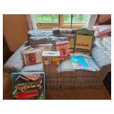 Furniture: Dining Table with 6 Chairs, China Cabinet, Buffets, Console Table, Dressers, Side Tables, Dressers with Mirrors, Nightstands, Bedroom Set, Beds, Desks, Couches, Coffee Tables, Entertainment Center/Bookcase/Cabinet Set, Kitchen Table with 4 Chairs, Chair/Ottomans, Entertainment Table, Bookcases, Curio Cabinet, Recliner Large Collection of Department 56 Christmas/Halloween Villages & Accessories Large Collection of Faux Florals / Faux Plants Small Kitchen Appliances: Farberware Microwave, Hand Mixer, Oster Toaster, Chefmate Blender, Electric Knife, Crockpots, Dazey Ice Crusher Electronics: LG TV, HP LaserJet Printer, Canon Power Shot Camera, GE Tape Recorder, Digital Frame Huge Collection of Movies (DVDs, VHS) Books (Vintage & Current), CDs, Records Assortment of Craft Supplies, Fabric, Wrapping Supplies Clothing, Shoes, Accessories Home Goods: Eureka Air Speed Vacuum, Cleaning Supplies, Black & Decker Hand Vacuum Garage Goods: Yard Tools, Sled, Walkers, Holiday and Seasonal Decor