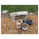 (2) Concrete Garden Benches & Misc Planters and Garden Ornaments |