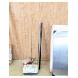 (2) Open Face Fishing Poles, LL Fly Rod Holder, Tackle |