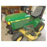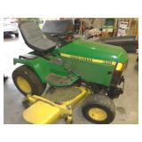 Mower: John Deere 445 lawn tractor with 1884 hours with dual hydraulic remotes Jewelry: Gold jewelry, costume jewelry Appliances: Samsung stainless steel 4 door refrigerator, Whirlpool flattop stove, Cabrio by Whirlpool washer & dryer set Furniture:, 3 piece king size bed & bedding set, Artist console piano, setee, office desk, dressers, 4 piece living room set, Nelco sewing machine, VHS cabinet, dining table with chairs & bench, Whirlpool chest freezer, 2 dehumidifiers Antiques & Collectibles: small cast iron stove for display, stone pitchers, concrete stable boy, blow mold Halloween decorations, oil lamp, roaster ovens, cuckoo clock, Indiana University mantle clock, knife, blow mold Santa Outdoor & Garage: park bench, wood wheel burrows, concrete bench, hand tools, 7000 watt generator with 14 HP motor like new, power saws, Makita drill set, bench vise, large amount of holiday decorations, Ryobi reciprocating saw, ½ impact wrench, portable air tank, old Schwin bicycles, wishing well, large lava rocks, 28 ft windmills, Ryobi sanders, bench grinder, engine hoist, Snapper push mower, Shop Vac, Cub Cadet snow blower, garden seeders, hose reels, jack stands, loading ramps, Troy Bilt push mower, Cambell Hausfeld power washer, 2 ton floor jack, extension ladder, gas powered edger, Craftsman 175 PSI air compressor, Rubbermaid dump trailer, lawn sweep, 6 ft ladder, 2 Agrifab spreaders, 2 yard thatchers, gas powered auger, pull type sprayer, yard aerator