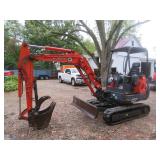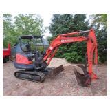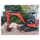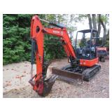 Track Loader/Mini Excavators: VERY NICE 2020 Kubota SVL65-2 diesel Track Skid Steer w/ full cab (heat & AC), hyd. detach, 68” bucket, & only 311 hrs.; Nice 2018 Kubota KX033-4 diesel Mini Excavator w/hyd. thumb, 12” bucket, & 1,334 hrs.; 2013 Kubota KX91-3 diesel Mini Excavator w/ hyd. thumb, 12” bucket, & 2,828 hrs.; (2) 36” ditch buckets; Woods 4400 QT pallet forks; Lowe 1650EH QT skid steer auger; CAMSO 10-16.5 Skid Steer rubber track kit; set of (4) 10-16.5 NHS Skid steer tires on rims.