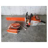 Misc. Landscape Items: CANYCOM SC75 rubber track concrete buggy; wheelbarrow air compressor; Troy snow blower; Core Cut CC500M Diamond Masonry saw; torch set; Simpson & Landa Pressure washers; Lincoln 140 MIG welder; Stihl MS251 18” chainsaw; Stihl MSA 220C electric chainsaw; Gro-Mor PaveMor landscape paver lifting system; asst. power tools; wheelbarrow; shovels, rakes, & other landscape tools; drain pipes; water hoses; Landscape Ball cart/dolly; Echo backpack blower; TOPCON laser level; DeWalt miter saw & chop saw; Lesco lawn spreader; hardware & fasteners; landscape design equipment and supplies; electrical and irrigaition supplies; polycarbonate roofing; pallets of Unilock landscape stone and pavers; large amount of sandtone; many unlisted landscape-related items.