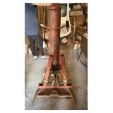 Large upright air compressor; 2 Sections new scaffolding on wheels; Snap On air bumper jack; Radial arm saw; Pallet mover; Motor stand; 4� x 4� Gaylord totes; Cyclone fence; Metal cabinets & shelves; Boring bar; New welding iron; Tools & supplies
