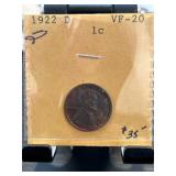 1922-D Lincoln Wheat Penny Graded VF-20 |