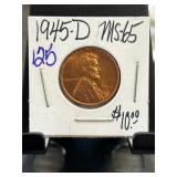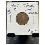 1945-D Lincoln Wheat Cent Toned UNC 64RB |