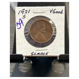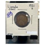 1921-S Lincoln Wheat Cent in Stapled Holder |