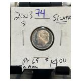 2003 S Roosevelt Dime Silver Proof Coin, Graded PF |