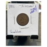 1891 Indian Head Penny in Protective Case |