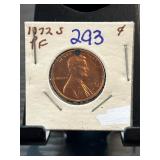 1972-S Lincoln Cent Proof Coin in Cardboard Holder |