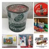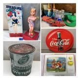 Featuring a variety of vintage toys, Christmas ornaments and decorations, pottery planters, vintage advertising, mason jars and other antiques and collectibles. 1 Shipping/Pick Up Info ***PLEASE NOTE: There are 2 separate pick up locations for this sale*** Lots #2-599 can be picked up at 817 Olive Alley Elizabethtown PA 17022 Lots #600+ can be picked up at 301 E Park St REAR Elizabethtown PA 17022 Links to the pick up schedule ... 2 Vintage Oliver Typewriter Produced Between 1895 & 1928 4 Vintage Tootsietoy Diecast Cars Cadillac, Cement Truck, 1959 Ford, etc. 5 Vintage Home Farm Set 99 PCS, Good Condition 6 Vintage Coin Bank Treasure Chesy bu Illfelder Toy Company 7 1944 Vintage Calendar Ricker's Service Station, Harrisburg, PA 8 Vintage Die-Cast Metal Toy Vehicles U.S. Army, Greyhound Bus, Tricky Taxi, etc. 9 Basket of Old PA License Plates 1954 x 2001 10 Lot of Glass Pitchers Headset Hand Blown, Pressed Glass, Cut Glass, etc 11 Round Coca-Cola Sign 27.25" Round, Plastic 12 Lot of Vintage Flower Vases Birds, Baby, Golfer, seashell, etc. 13 Vintage 1/2 Pint Milk Bottles Hoffman's Dairy, Rutter Bros., Embassy 14 Antique Corn Husking Tools Made From Metal, Bone and Wood 15 Vintage Colorado Centennial License Plate 2 Metal Plates 16 Lot of Vintage Patches Flags, Military, Police, Businesses, etc. 17 Vintage Tea Pots 5 Ceramic, 1 Copper, Sizes Vary 18 Ceramic Elephant Stool & Pots Stool is 11" x 13", Pots App. 7" x 5" 19 Vintage Plush Dolls Sprout, Tony Tiger, Chiquita, etc. 20 Underwood Vintage Typewriter Standard Four Bank Keyboard, Early 1900's 21 Pfaltzgraff Gourmet Stoneware 3 Pc, Bowl Set - 6", 8," and 10" 22 Vintage Thibouville Wooden Clarinet Fdel 'Armee 23 Vintage Teapot Hall's "Streamline", Introduced in the Early 1930's 24 Vintage Big Top Peanut Butter Glass Made by the Hazel-Atlas Company, Star & Diamond Pattern 25 Theatrical Hand Puppets King, Old Man, etc. 27 Paper Mache Rabbit Figure Possibly from Japan 28 Vintage Hand-Blown Art Glass Vase Deep Amethyst, "Optic" Swirl Pattern 29 Moriyama Teapots 2 Teapots with Tray, Made in Japan 30 Fairy Vanity Clock 6.5" x 4" 31 Vintage Tea Sets Luster Service warranted 22K Gold, English Set & Japan Set 32 Kotex Dispenser Hospital Grade 33 Rocking Horse Music Box Plays Toyland, Possibly Manufactured in the late 1970's 34 Vintage Movie Reels 16 mm, 5 reels total 35 Vintage Ceramic Teapots 6 Teapots Total, various Designs 36 Theatrical Hand Puppets 2 Kings, 3 Ladies 37 Vintage Space Commander Syrup Bottles 5 Bottles Total 38 Vintage Plush Mickey Mouse Roll Poly Plush, Stuffed Body w/ Plastic Face 39 Vintage Glass Slide Strip 6 Different Strips 41 Vintage Sword w/ Case 26" Long 42 Vintage Gem Photo Album 4.25" x 3.5" 43 Vintage Trick or Treat Bags 2 Different Patterns 44 Pfaltzgraff Plates Friendship Collection, 13.5" Round 45 Vintage Flatware WM. Roger's & Son AA, 84 Roger's Bros., Horn & Hardart Baking Co. 46 Coca-Cola Shadow Box Coke Machine is a Radio, App. 18" High x 12" Wide 47 Vintage Swan Flower Vases 4 total 48 Vintage Faberge Eggs VinCerro Crafted Metal 49 Vintage Porcelain Small Figurines 50 Vintage Flower Picture Antique Gilded Wooden Frame, 21" W x 17" H 51 Vintage Metal Gasoline Tanker Toy Truck Wyandotte Toys Pressed Steel, 10.5" Long 52 Jar of Vintage Voting Pins RESULTS! Vote Republican 53 Vintage Space Commander Syrup Bottles 5 Bottles Total 54 Vintage Renwall Toy Boats 3 Ferries and 1 Freighter, 4.5" Long 55 Children's Puppet & Story Books 6 Puppet, 2 Story 56 Lot of Mattel Hot Wheels Original Packaging 57 Vintage Wooden Clown Ring Toss Made in France 58 Harvard Sports Headwear 1 Red, 2 Blue, 6 Green 59 Vintage Enamelware Storage Box, Blue Bowl, sS, Strainerock Pot 60 Indian Made Cavalry Sword Replica Possibly 20th/21st century, 40" long 61 Vintage Toy Car Mercedes -Benz, "Gullwing" Coupe 62 Vintage Ford Mustang Grille Emblem "Pony and Corral", Part of a 1966 Ford Mustang 63 Vintage Decorative Lamp Base Asian Inspired, base measures 9.75" 64 Vintage Family Album 4" x 5" 65 Vintage Postcard Collection Holiday, Birthday Greetings, and More 66 Vintage Turkey Platter 18.25 x 14.50 67 Vintage TV Lamp Asian Woman with Fan, 10" H x 9.5 W 68 Vintage Wire Egg Basket 8" High x 14" Round 69 Vintage Family Album 6" H x 4" Wide 70 Vintage Souvenir Pennants Atlantic City, NJ, Dubuque, Iowa, Hershey Park and many more 71 Decorative Windmill Salesman's Sample, 17" High 72 Nicole Miller Handbag 12" L x 10" H 73 Vintage Show Card Lettering Pens 19 Total Pens 74 Toby Jugs and Mugs Character Jugs/Mugs 75 Westmoreland Milk Glass Santa Santa on a Sleigh Candy Dish 76 Blue Matte-Finish ceramics 2 Vases, 2 Candlestick Holdres, 1 Flower Frog 77 Castiron Ashtray Man on Lamppost 78 Vintage Pleated Lamp Shades 4 Tier Green w/Beaded Trim, 8 Tier Red w/Beaded Trim 79 Lot of Vintage Salt & Pepper Shakers 16 Sets, Most are Ceramic 82 Vintage Oyster Can Harrison Brand 83 84 Vintage Black Panther Planter Lamp 11" High x 11.5 Wide 85 Vintage Electro-Diagnostoset Cameron's Diagnostic and Operating Lamps 86 Vintage Lettering Set Teledyne Post - Lettering Set 87 Vintage Fountain Pens 1 Nib - 14k in case, 7 others + 4 business pens 88 Castiron Cat Bank 5" High 89 Antique Porcelin Steam Tray Barber Equipment, 7" Long x 3" High 90 Nativity Set Stable 12" H x 17" W 91 Antique Childs Tea Set Punch and Judy, some cracks & chips 92 Vintage Post Cards Dating back to 1908 93 Sterling Weighted Candlesticks 3.5" x 2 94 Vintage Wall Calendars 1990 - Brown's Country Store 95 Vintage Punchboard Large is 9" x 7.5", Small is5.5" x 4" 96 Lot of Vintage Handkerchiefs and Scarfs Many patterns to choose from 97 Vintage Fisher - Price Music Box TV Two Tunes Two Picture Stories 98 Santa on Scooter Pull Back and Watch Him Go 99 Vintage Post Cards Dating back to 1908 100 Vintage Can Top or Umbrella Handle Possible Inlaid Mother-of-Pearl, Ornate Etched Design 101 Vintage Hand-Blown Art Glass Bird Shaped 105 Vintage Ceramic Teapots 7 Total 106 The Pocket University Books Dated 1923, 8 Boo
