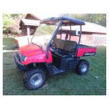 Tractor/Polaris UTV/Trailers: Minneapolis Moline U302 gas tractor showing 1475 hrs.; Nice 2005 Polaris Ranger 4x4 Utility vehicle w/760 hrs; International 7x18’ tandem equipment trailer; 4x9’ utility trailer.