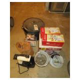 Outdoor Equipment/Tools: John Deere 5’ 3 pt. brush mower; Oliver 3x16” plow; 6’ 3 pt. disc; 7’ cultivator; nice King Kutter II 6’ 3 pt. rototiller; 6’ 3 pt. blade; 9’ cultipacker; lifting boom; 7x16’ flatbed hay wagon; Craftsman 22 HP lawn tractor w/50” deck; lawn roller; Agri-Fab & Crafts. Lawn sweepers; Troy Bilt Horse tiller w/Kohler; Crafts. Edger; Crafts. 32” snowblower; lawn & garden tools; sap buckets & spiles; Echo trimmer & leaf blower; chainsaws; Ryobi 18V pole saw & blower; 300 & 550 gal. fuel tanks; log chains; ladders; tires & rims; automotive items; mower jack; scrap metal; fishing rods & tackle; pipe wrenches; sockets and ratchets; wrenches & hand tools; asst. power tools; radial arm saw; Generac 3100 psi pressure washer.