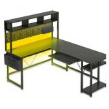The gaming desk comes with RGB LED light , remote control via APP, Over 60000 colors and 29 flashing modes for your to choose. Led lights with music sync function, built-in sensitivity adjustable mic, led light color will change with the rhythm of the sound and music. This l shaped gaming desk can meet you play games for your home offices.