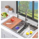 30 inch Drop in Kitchen Sink Modern Workstation Farmhouse Sink With Right Hand Drain (Accessories May Vary From Stock Photo)