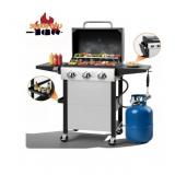30000BTU Gas Grill, 3-Burner Grills with Built-in Thermometer & Side Table, Stainless Steel BBQ Grills for Outdoor Cooking