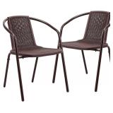 VINGLI Rattan Outdoor Dining Chairs Set of 2, Durable PE Plastic Stackable Patio Chairs with Comfortable Curved Back and Armrests for Indoor, Porch, Restaurant, Garden, Brown