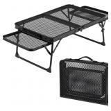 VINGLI Folding Grill Table, Outdoor Foldable Camping Table, 3 ft Portable Picnic Table with Wing Panels & Mesh Tabletop, Lightweight Aluminum Tables, Easy Carry for Outside BBQ, Beach, Yard, Black