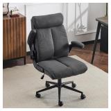 VINGLI Rolling Ergonomic Office Desk Chair with Padded Flip-up Arms, 360° Swivel High Back Executive Computer Task Chair with Wheels for Game,Home Small Space, Study Room, Reading Room, Linen Black