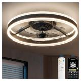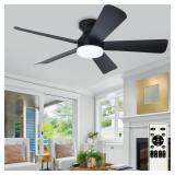 Ceiling Fans with Lights and Remote, 19.7'' Low Profile Ceiling Fan, 3000-6000K Dimmable Modern Flush Mount LED Fan Light, 6 Wind Speeds, Black Fandelier Ceiling Fans for Bedroom