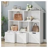 Homfa Toy Storage Organizer with 3 Movable Drawers, 5 Cube Kids Bookcase for Playroom, Storage Cabinet for Living Room, White Finish