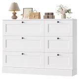 6 Drawer Dresser, White Dresser for Bedroom, Wood Wide Chest of Drawers, Modern Drawer Chest for Living Room, Entryway, Hallway, White