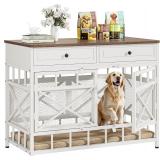 IRONCK 44 inch Large Dog Crate Furniture, Wooden Dog Kennel with Storage Drawers for Medium/Large Dogs, Decorative Dogs Kennel Indoor, White and Walnut