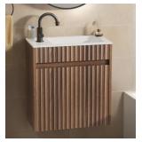 Fluted 18" Wall Mounted Bathroom Vanity Set with Sink Top, Small Floating Bathroom Vanity, Walnut (COMES IN TWO BOXES)
