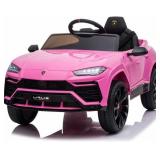 12V Kids Ride On Car Licensed Lamborghini Urus Electric Car for Kids Vehicle Toy/Parent Remote Control, USB Port, AUX, Spring Suspension, Opening Door, LED Light (Pink)