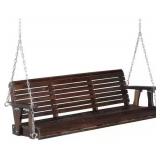 5 ft. Rustic Wood Patio Porch Swing with Adjustable Chains, Support 880 lbs. Durable PU Coating