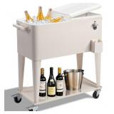 Ktaxon 80 Qt Rolling Ice Chest Cooler Cart Outdoor Trolley with Storage Shelf, Bottle Opener & Cap Collector for 48 Hour Cold Drinks,White