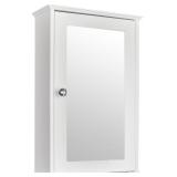 Bathroom Cabinet Wall Mount Mirrored Medicine Cabinet Storage Organizer with Single Door and 2 Adjustable Shelves White