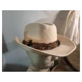 White Felt Cowboy Hat with Feather Band by Mary Ma |