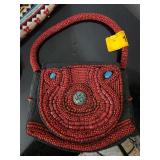 Handcrafted Black and Red Beaded Handbag with Deco |