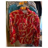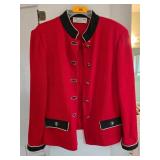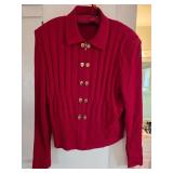 St. John by Marie Gray Red Button-Up Blouse with C |
