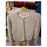 St. John Teal Cardigan with Floral Detail, Size 10 |