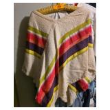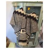 Handwoven Wool Poncho with Geometric Patterns in N |