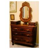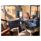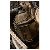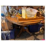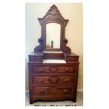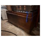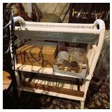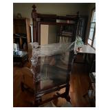 Antiques, Household & Misc. Commercial step back cabinet, 3pc. matching dining room set w/beechnut pulls & spindle accents, Large Antique glass front store display cabinet w/rear access (MUST SEE), antique rope bed, antique Victorian 1/2 tester bed, Walnut caned Lincoln rocker & planked seat rocker, Cheval mirror, Victorian dresser, oak bed & dresser, dresser w/mirror & handkerchief drawers, Large vertical mirror, vertical foyer mirror, oak washstand, lg lot wicker furniture mostly white, round oak dining table w/leaf, formal writing desk, lot small occ tables, petite marble top parlor tables, lg lot wire Ice Cream parlor chairs & tables, French Topiary English plant stand, 2 – wall plate racks, assorted stoneware crock bowls & jugs, West Germany Regulator clock, Baccarat decanters, Waterford crystal, Steuban & others, Turquois blue glass, Amethyst, milk glass, Assorted antique glass children’s dishes, lot tea leaf china, lot Meadow Gold & Tullis Hall items, Blue & White graniteware, 4 – exterior copper hanging lamps, Missouri Pacific 5pc. tea set, Glass Hoosier cabinet decanter set, lot wire plant stands, Salt glazed pottery, polish pottery, lot picture frames, lot misc. holiday décor,