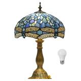 YingJu Dimmable Tiffany Lamp,Blue Stained Glass Table Lamp,12X12X18 Inches Dragonfly Style Desk Lamp for Living Room Bedroom,Include LED Bulb
