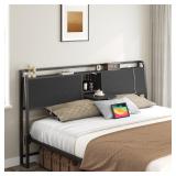 ****WHITE**** Headboard Queen Size Only, Headboard with 4 Outlets and 4 USB Ports, Industrial Head Board with Flip Door and Bed Frame Adapter, Height Adjustable, Black