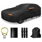 30 Layers Car Cover for Automobiles All Weather Waterproof, Outdoor Snowproof UV Protection Windproof, Door Zipper, Soft Cotton, Heavy Duty Universal Car Covers, (Black, Fit Sedans 201"-210")