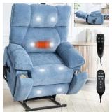 Blue Heat Massage Dual Motor Infinite Position Up to 350 LBS Large Electric Power Lift Recliners with Hidden Cup Holders, Power-Remote, Medium-firm and Heavy Duty