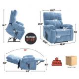 OVERSIZED LIFT RECLINER CHAIR: This power lift chair is featured by extra large appearance, which make it an ideal choice for people in bigger size. Measure - 40.5"W x 36.6"D x 42.2"H, Seat Height - 20", Seat Dimensions - 25"W x 22"D. Weight Capacity: 350lbs. POWER LIFT RECLINER CHAIR WITH DUAL MOTOR: You can press the power remote to control the lift or recline of the recliner chair, which means you can get any position you want, it's reclining close to 180 degrees or lifting. The lift chair is powered by electric motor mechanism to push the entire chair up, working smoothly and silently to help the elderly stand up easily. It's also ideal for people who have balance problems with legs or back, or who after surgery. MASSAGE & LUMBAR HEAT FUNCTIONS: It comes with 8 vibrating nodes (back, lumbar, thighs, legs) and 3 massage modes for selection, each massage point can be operated individually. There is timer function in 15/30/60 minutes which is convenient for you to set massaging time. Add a lumbar heat point to promote blood circulation throughout your body, providing a full body relaxation! DURABLE UPHOLSTERY & DUAL SIDE POCKETS: he chair features high-quality chenille fabric for easy cleaning while still providing superior comfort and aesthetics. Clean with a dry or damp lint-free cloth. In addition, you can put small items or magazines into the side pockets you need. TIPS: If you have any concerns regarding your health, consult your doctor before using the product. - Easy Assembly & Service: The large lift recliner comes with 1 box, It takes only several steps to assemble this power lift chair and NO TOOLS.
