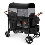 Wagon Stroller for 4 Kids, All-Terrain Wagon for Toddler with Canopy, Parent Organizer, Shoulder Bag, Adjustable Handlebar, Phone Holder, High Seat & 5 Point Harness, Ultimate Quad (Black)
