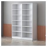 Book Shelf with Back Panel, Bookshelf with Tall Spacing, Bookcase Floor-Standing Type, Open Storage Shelves, Display Case Perfect for Corners, Bookshelves Multi Scene(White,A100)
