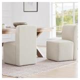 CHITA Dining Chairs with Casters Set of 2, FSC Certified Upholstered Armless Modern Rolling Dining Chairs with Rollers for Bedroom Reading Room Living Room, Linen