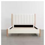 Cream Wood Frame Queen Upholstered Platform Bed Mid-Century Modern Queen Bed Frame with Channel Tufting