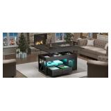 40in Lift Top Coffee Table Black Farmhouse Small Coffee Table with 2 Fabric Drawers and LED Light