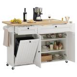 60" Kitchen Island with Power Outlet & Drop Leaf, Kitchen Rolling Island with Spice Rack & Towel Rack, Knife Holder, Kitchen Island Cart with Trash Storage Cabinet, Mobile Island Table for Kitchen
